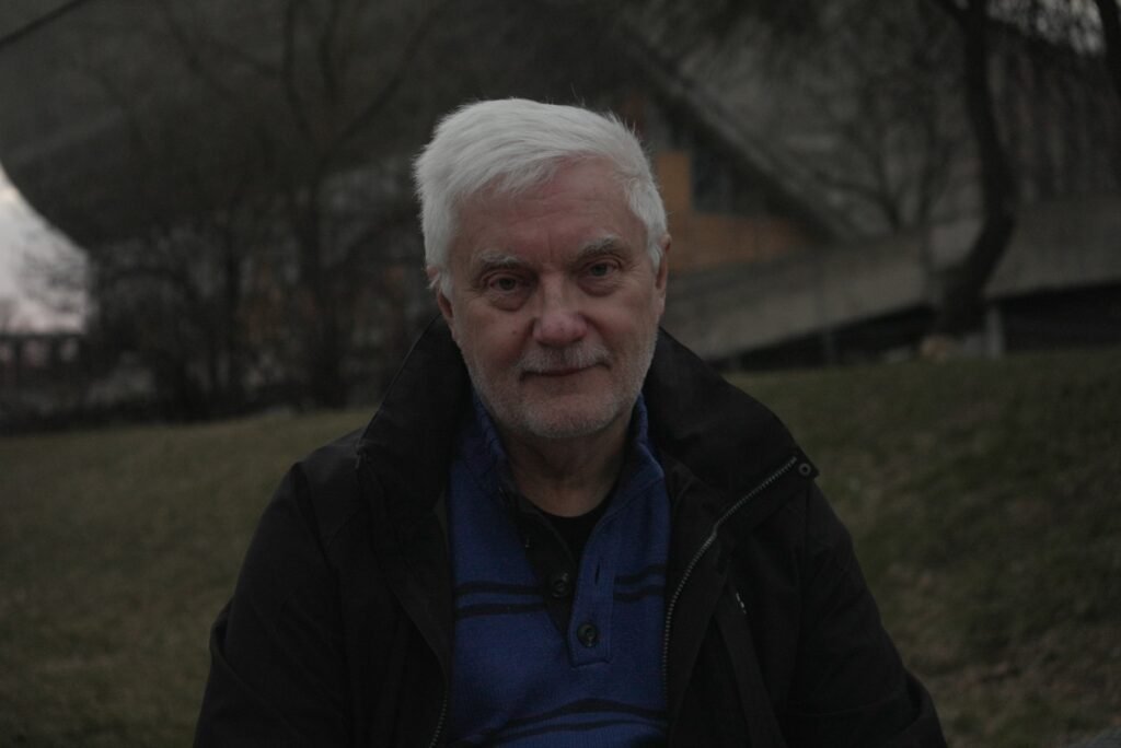 Vilius Kavaliauskas devant le Palais des Sports de Vilnius, qu’il souhaite voir rénové depuis des années. / Crédits : Pauline Gable