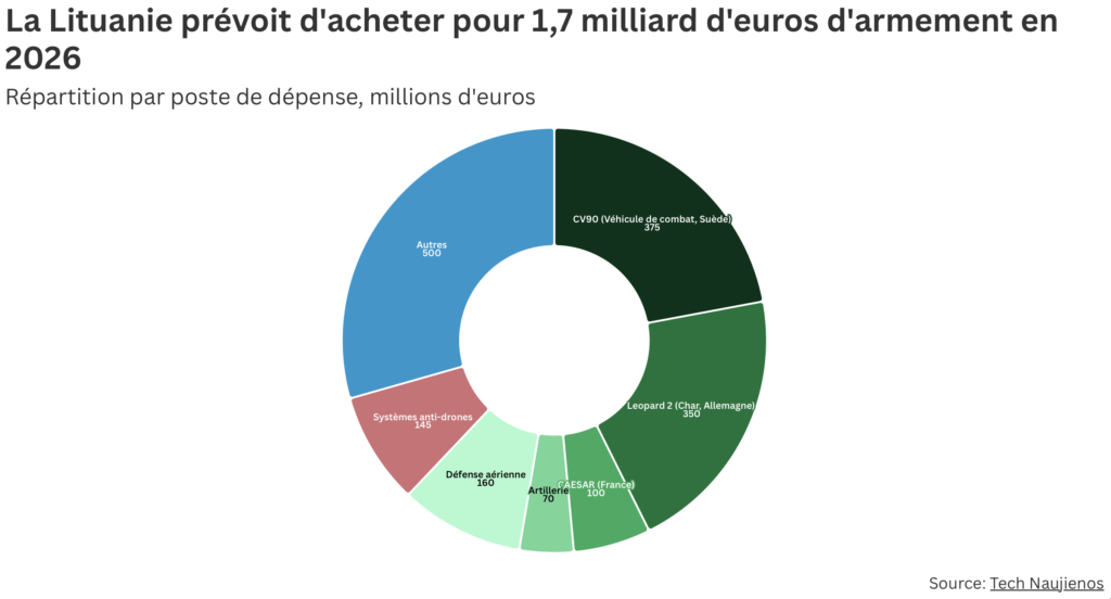 Si la Lituanie peut s’appuyer sur ses usines de drones et de munitions, elle reste dépendante de fournisseurs étrangers pour les équipements plus lourds. Le pays prévoit d’investir cette année près de deux milliards d’euros pour moderniser son arsenal, incluant des chars, des blindés CV90, des systèmes d’artillerie Caesar et des lance-roquettes HIMARS. « Faute de marché intérieur suffisant, les petits pays se spécialisent dans des productions de niche et dépendent des importations pour leurs systèmes de défense », explique Renaud Bellais, chercheur associé à l’Université Grenoble-Alpes et spécialiste de l’économie de la défense, par ailleurs conseiller institutionnel du PDG de la société MBDA.