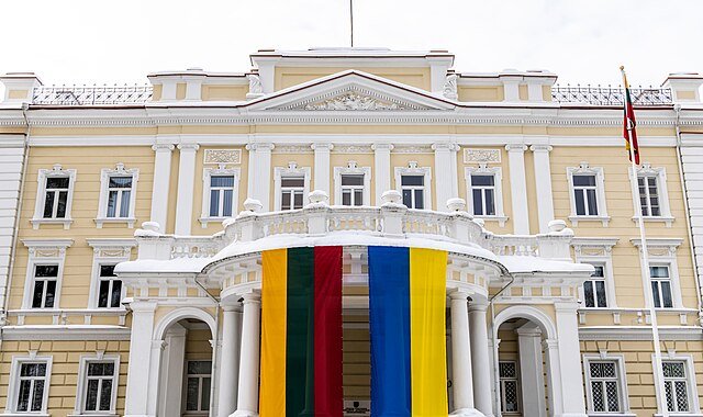Le ministère de La Défense, situé à Vilnius, affiche son soutien à l’Ukraine. Creative Commons Attribution 2.0
